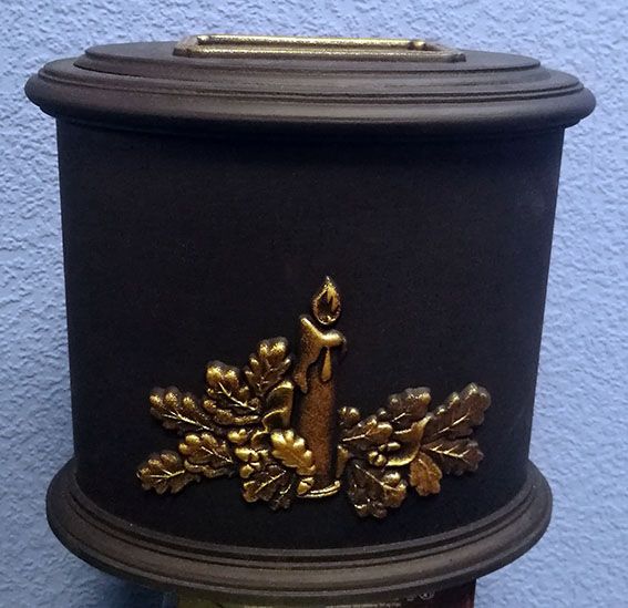 Урна 4 В корзину Купить в 1 клик В корзину Купить в 1 клик Деревянная черная урна овальной формы. Дополнена декоративным элементом – свечой с дубовыми листьями цвета бронзы. Деревянная черная урна овальной формы. Дополнена декоративным элементом – свечой с дубовыми листьями цвета бронзы. Комментарии 0 Комментарии 0 Добавить комментарий