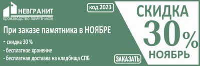 Недорогие При заказе памятника в ноябре скидка 30 % , бесплатное хранение до момента установки,бесплатная доставка на кладбища Санкт-Петербурга. Для скидки необходимо при оформлении заказа сообщить менеджеру ПРОМОКОД*: 2023