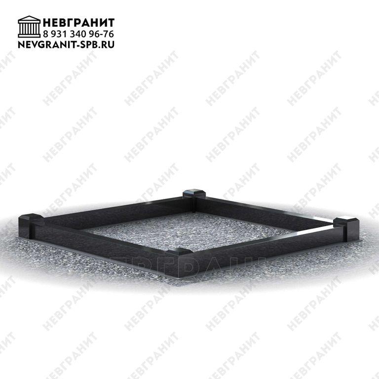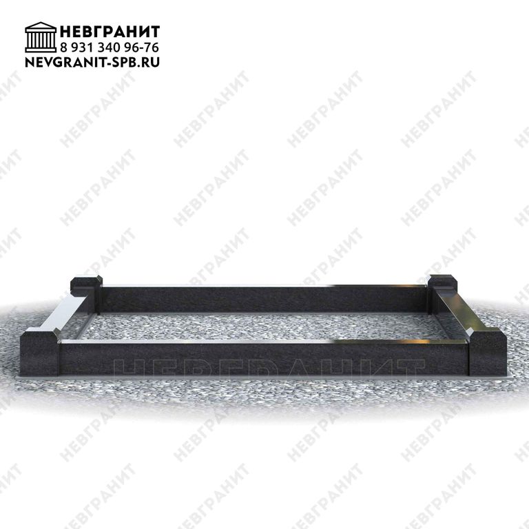 1 гп. Классический прямой гранитный поребрик со столбиками по углам на могилу .Высоту поребрика и столбиков заказчик выбирает при заключении договора.Указанный размер 2 м на 2 м является ориентировочным и может быть изменен по согласованию с заказчиком с учетом размеров конкретного участка могилы.