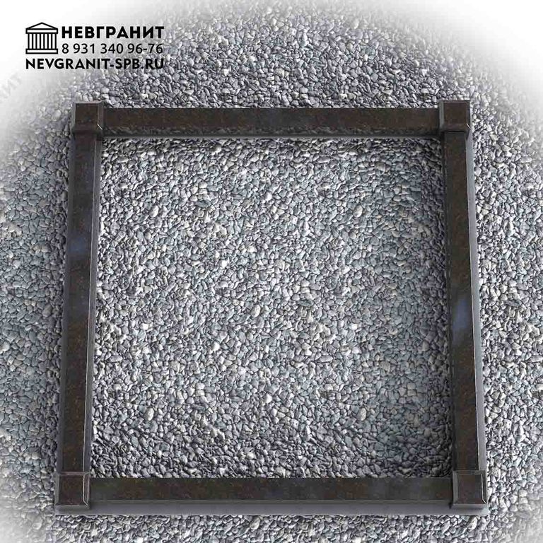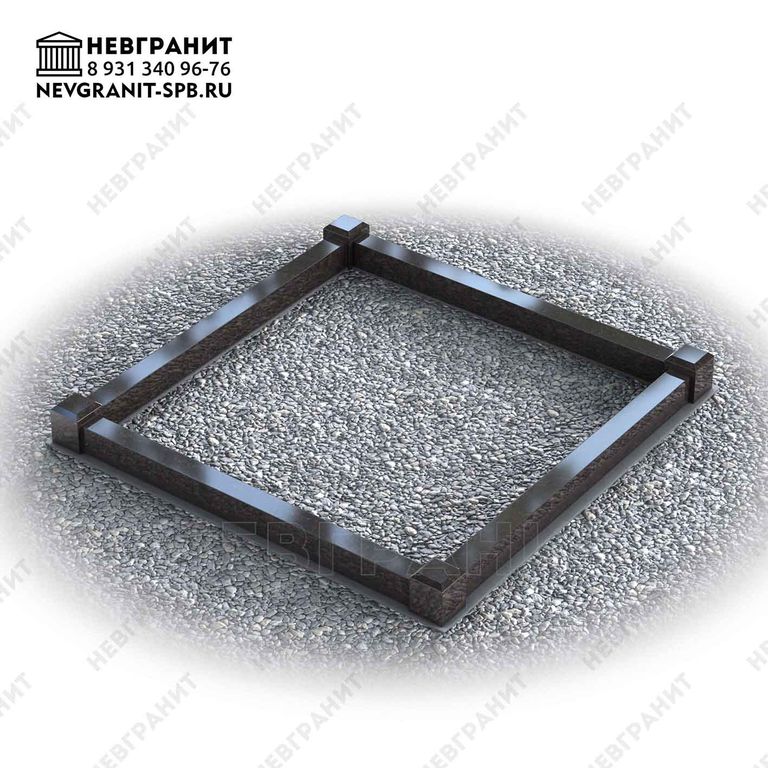 1 гп. Классический прямой гранитный поребрик со столбиками по углам на могилу .Высоту поребрика и столбиков заказчик выбирает при заключении договора.Указанный размер 2 м на 2 м является ориентировочным и может быть изменен по согласованию с заказчиком с учетом размеров конкретного участка могилы.