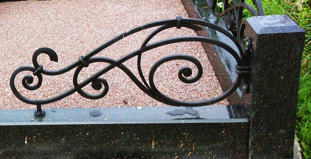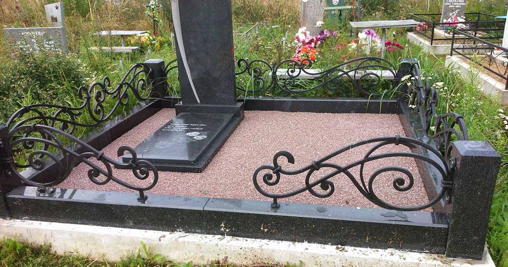 2 гк. Поребрик гранитный комбинированный с коваными элементами – металлическими уголками. Конструкция надежна, выглядит необычно, современно и стильно. Металлические уголки созданы по авторскому эскизу и закреплены по периметру участка с помощью гранитных столбиков. Указанный размер 2 м на 2 м является ориентировочным и может быть изменен по согласованию с заказчиком с учетом размеров конкретного участка могилы.