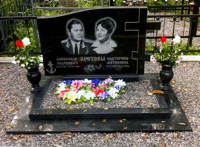 Горизонтальный цветник, облагороженный плитками по периметру, изготовленный из серо-черного гранита габбро-диабаз, придает захоронению ухоженный и законченный вид. Декором служат гранитные вазы, расположенные симметрично по сторонам цветника.