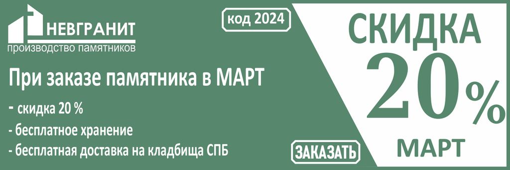 Недорогие При заказе памятника в МАРТЕ скидка 20 % , бесплатное хранение до момента установки,бесплатная доставка на кладбища Санкт-Петербурга. Для скидки необходимо при оформлении заказа сообщить менеджеру ПРОМОКОД*: 2024