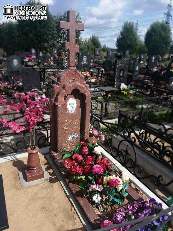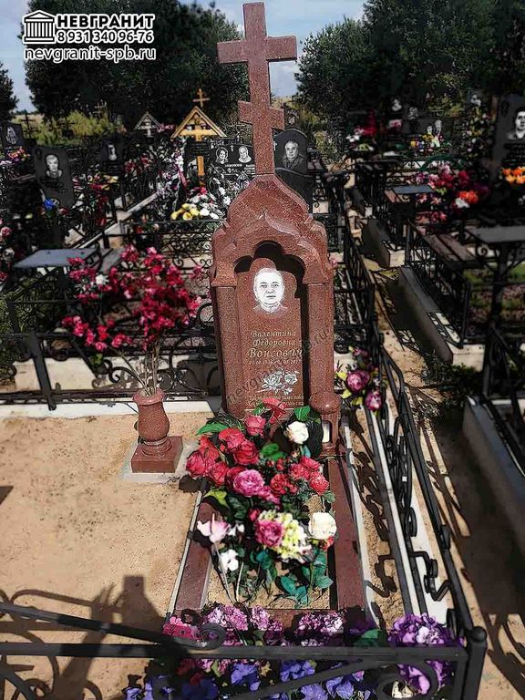 Памятник арка с крестом на могилу 2АР из красного гранита