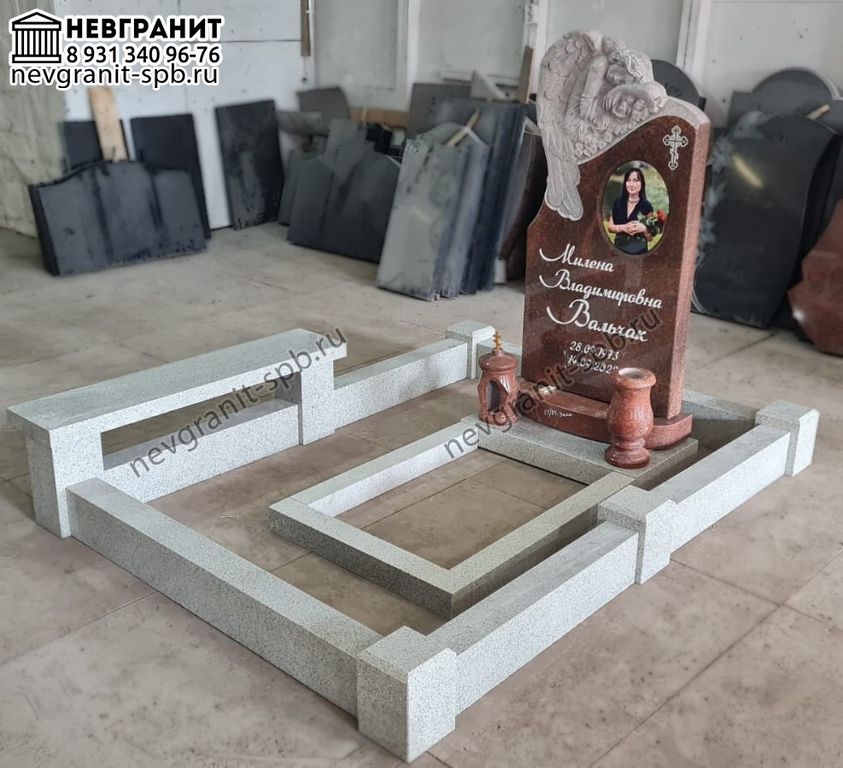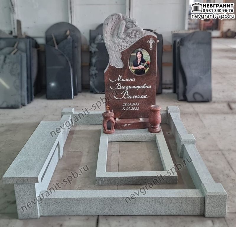 Памятник из красного гранита с ангелом 264 ограда