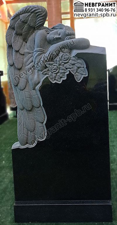 Памятник с ангелом на могилу из габбро2