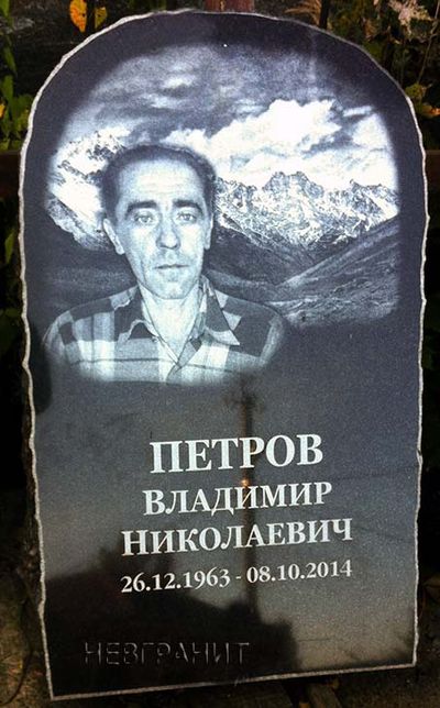Памятник – скала для одного человека из черно-серого натурального гранита габбро-диабаз. Стела вертикальной формы, портрет выполнен на фоне тематической картины.