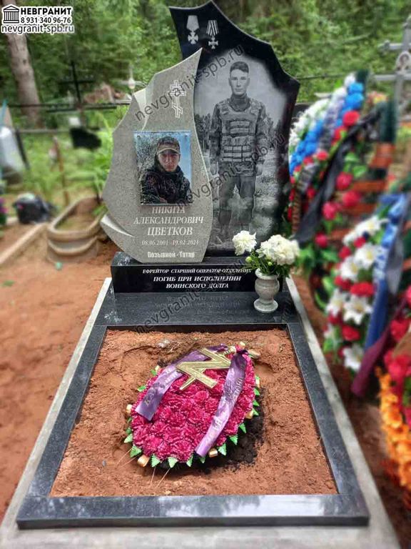 Памятник военному СВО на могилу комбинированный 278 красивый