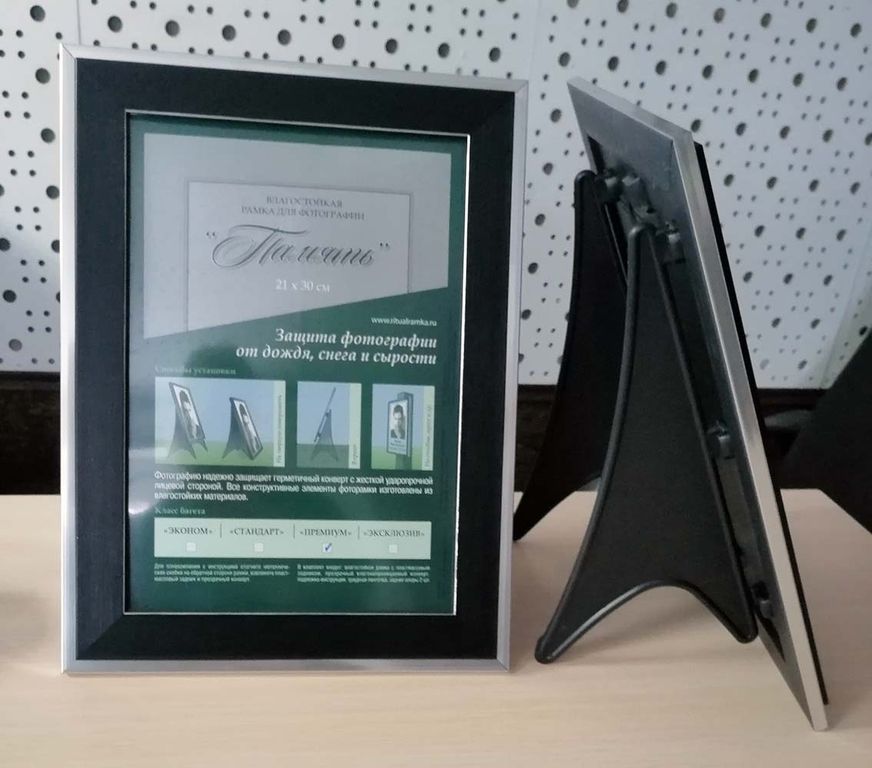 Влагостойкая рамка 21*30 для фотографии обеспечит надежную защиту изображения от дождя, снега и сырости. Фотография вкладывается в герметичный конверт с жесткой ударопрочной лицевой стороной. Допустимы разные варианты установки: в грунт, на твердую поверхность, на крест либо столбик. Фото можно разместить как горизонтально, так и вертикально.