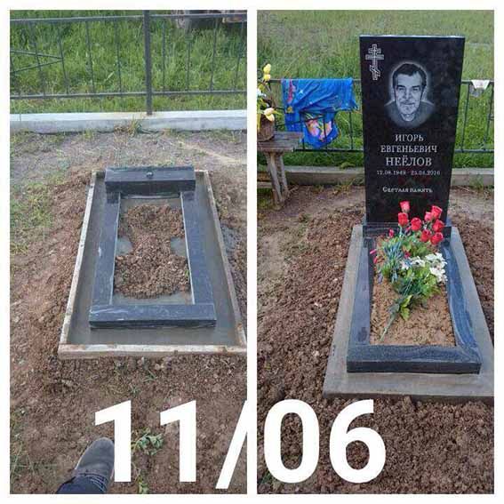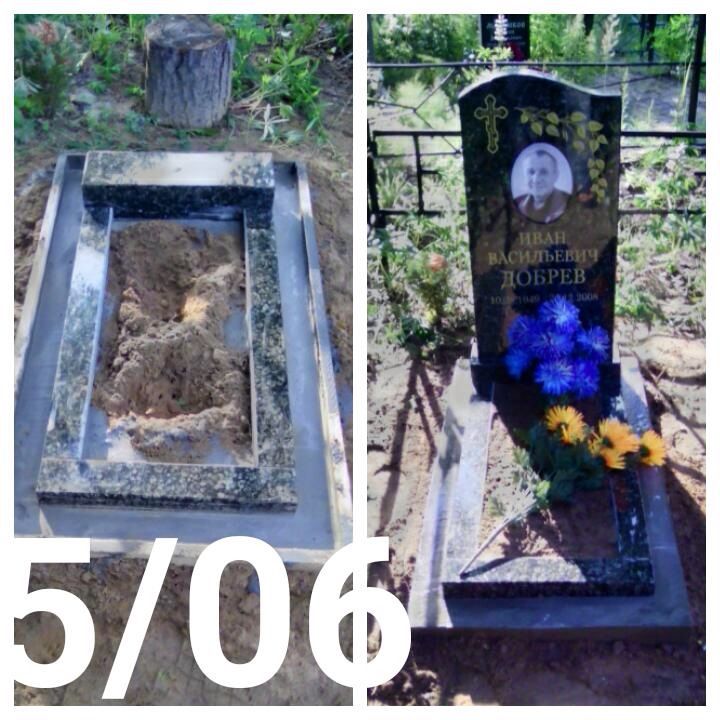 Установка памятника из гранита на могилу.